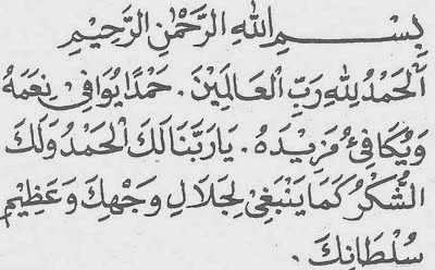 Bismillaahirrohmaanirrohiim.Alhamdulillaahi Robbil ‘aalamiin.Hamdan