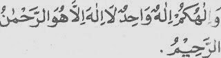 Wa ilaahukum ilaahuw waahidul laailaaha ilaa huwar rohmaanur rohiim
